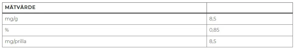 Nikotin (mg/prilla) för produkter som har nikotinhalt 8,5mg/g