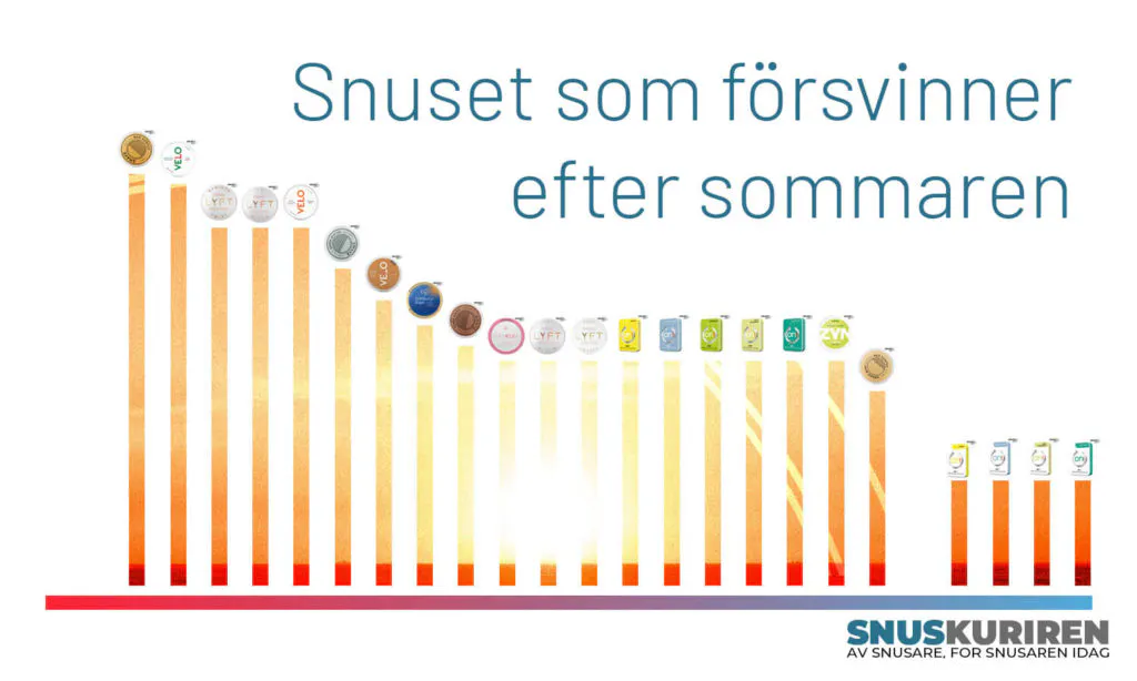 Under sommaren 2023 planeras 22 snusvarianter att fasas ut från tillverkarnas produktionslinjer och detaljhandelns hyllor. Altria, BAT och Swedish Match är de tre största tillverkarna som väljer att pensionera en betydande del av sina snussorter.