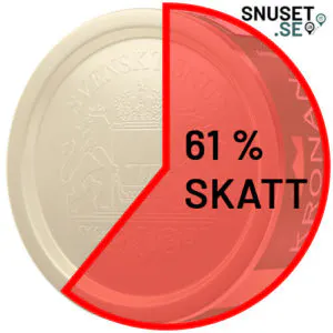Kronan Lös från Swedish Match är en av de snussorter som beskattas hårdast. Hela 61 procent av det snusaren betalar för dosan* är skatt i någon form. 41 procent är ren snusskatt, 20 procent är moms.