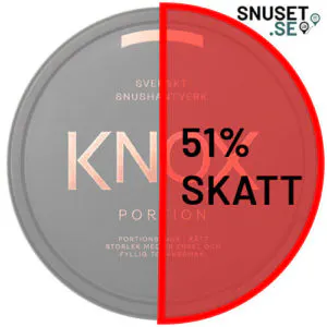 Knox extra starka portionssnus från Skruf Snus skattas lika hårt som den normalstarka Knox. 51 procent av det snusaren betalar för dosan* är alltså skatt i någon form. 31 procent är ren snusskatt, 20 procent är moms.