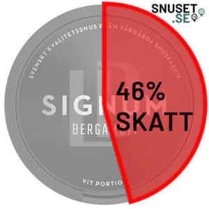 Hos nyheten LD Signum Bergamott White Portion från Nordic Snus (JTI) utgör skatten 46% av priset. 46 procent av priset kunden får betala för dosan* går alltså skatt i någon form. 26 procent är ren snusskatt, 20 procent är moms.
