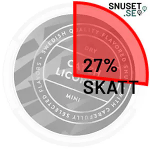 Det pris du betalar för en liten dosa Catch Dry Licorice Minisnus innehåller 27% skatt. 7 procent är ren snusskatt, 20 procent är moms.