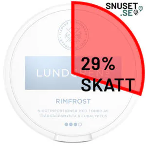När man köper en dosa Lundgrens Rimfrost Original från den klassiska snustillverkaren Fiedler & Lundgren går 29% till skatt. 9 procent är ren snusskatt, 20 procent är moms.