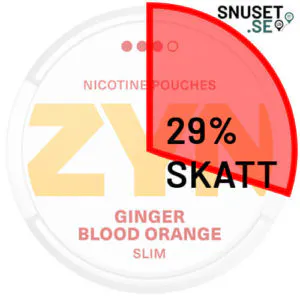Av priset en kund får betala för Zyn Ginger Blood Orange utgörs 29% av skatt. 9 procent är ren snusskatt, 20 procent är moms.