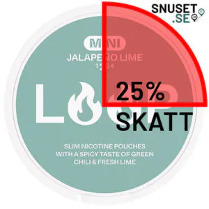 En dosa Loop Jalapeño Lime Mini, ett vitt snus i miniformat, kommer med ett skattetryck på 25%. 5 procent är ren snusskatt, 20 procent är moms.