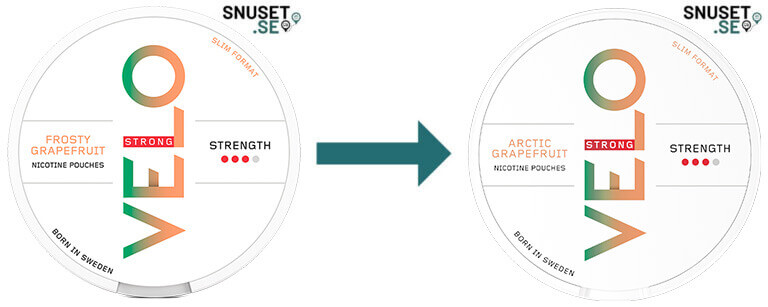 Velo Frosty Grapefruit får en ny etikett med namnet “Velo Arctic Grapefruit”. Ingen anledning till oro – den typiska smaken förblir densamma. Snuset.se kommer gradvis att övergå till det nya dosorna med det nya namnet.