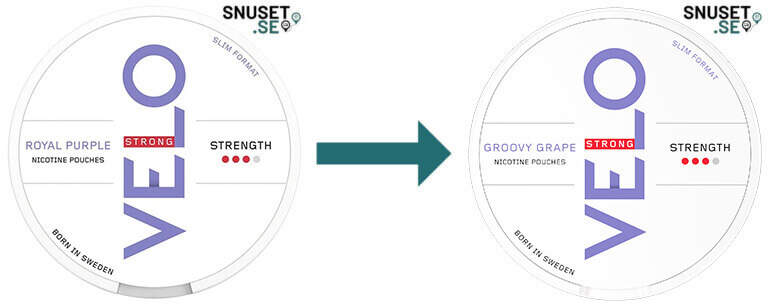 Det lila minisnuset utan tobak Velo Royal Purple kommer inom kort förvandlas till “Velo Groovy Grape”, men den klassiska smaken förblir. Så också den lila färgen.
