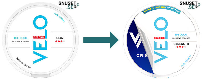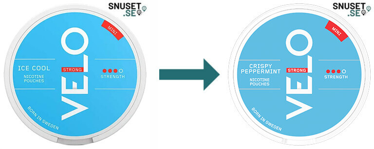 Det starka och mintliga vita minisnuset Velo Ice Cool Mini byter inom kort namn till “Velo Crispy Peppermint”. Smaken är den samma även om dosan kommer i en uppdaterad design och nytt namn,