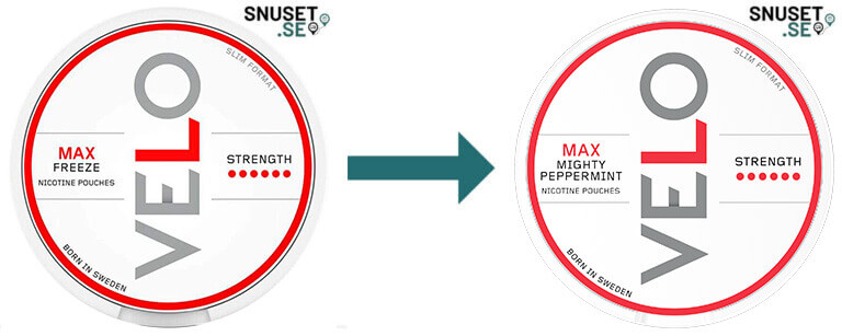 Den stark mintupplevelse kommer Velo Freeze Max kommer få det nya namnet “Velo Mighty Peppermint Max”. Detta gäller även de andra varianterna av denna smak. Designförändringen är minimal. Förändringen av smaken är obefintlig.