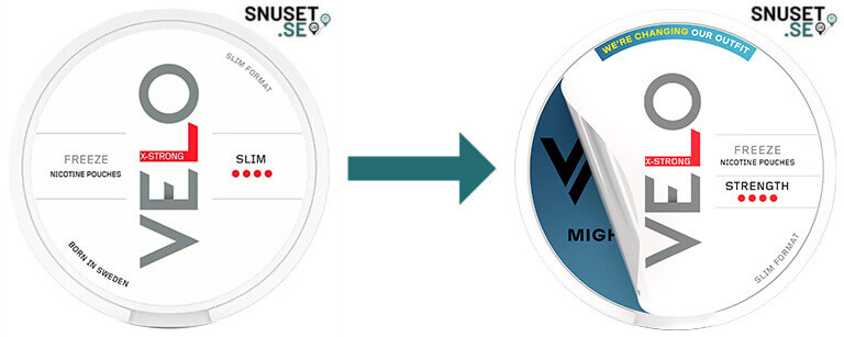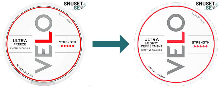 För att tydligare kommunicera den starka mintupplevelsen hos Velo Freeze byts namn och design på dosan. Det nya namnet är “Velo Mighty Peppermint”. Den nya dosan får en mörkare ton och en mer avskalad design.