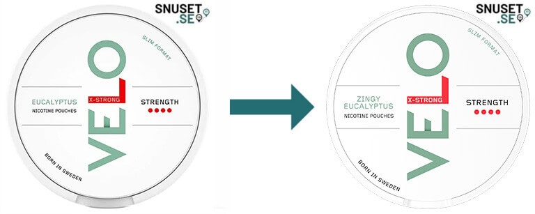 Slutligen är det Velo Eucalyptus X-Strong som får en ny och tydligare identitet med det nya namnet “Velo Zingy Eucalyptus”. Designen, smaken och upplevelsen består. Det nya namnet gör att du bättre förstår.