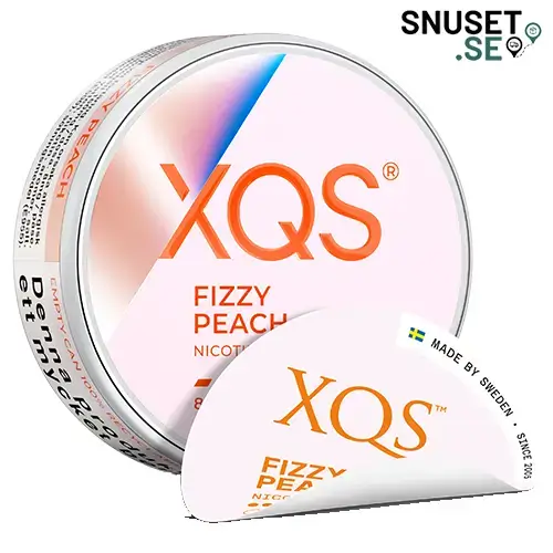 XQS Fizzy Peach är ett tobaksfritt vitt snus framtaget för den som vill ha en nikotinupplevelse med en frisk och söt fruktighet.