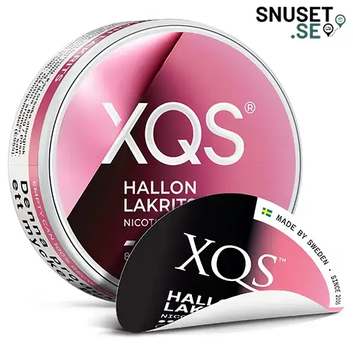 Xqs Hallon Lakrits tillverkas i Sverige och är ett tobaksfritt snus från varumärket Xqs. Innehållet består av fyllnadsmedel, vatten, salt, aromer, nikotin och sötningsmedel. Xqs är ett exempel på hur klassiska smakpar kan användas i modern prillor, utan tobak men med nikotin.